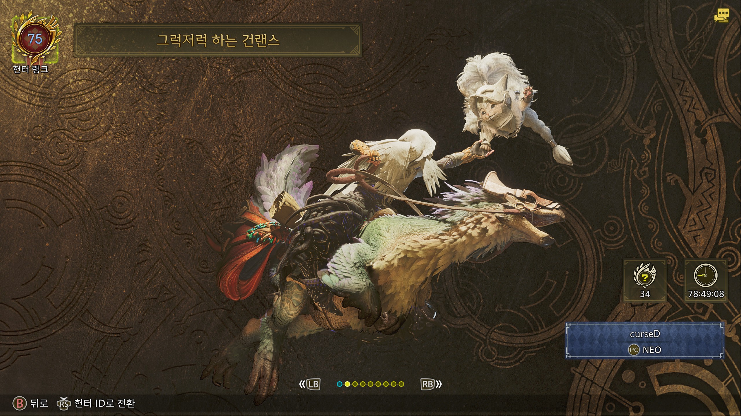 스팀기준 85시간 했네요. 몬헌 치고는 참 적당히 했지 싶습니다.